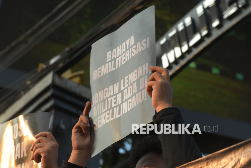 REPUBLIKA.CO.ID, JAKARTA -- Massa yang tergabung dalam Kolektif Merpati menggelar aksi dukungan kepada Andrie Yunus di depan Markas Pusat Polisi Militer Angkatan Darat, Jakarta, Kamis (16/4/2026).