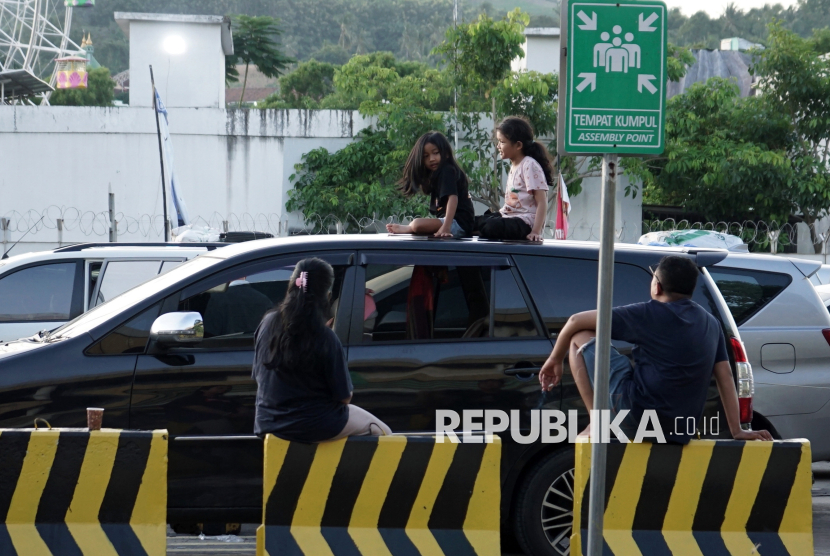 Dua anak duduk di atas kendaraannya saat antre memasuki kapal di Pelabuhan Bakauheni, Lampung Selatan, Lampung, Selasa (24/3/2026). Dirut ASDP Heru Widodo menyatakan, puncak arus balik gelombang pertama di pelabuhan Bakauheni diprediksi terjadi pada 24-25 Maret 2026, sedangkan gelombang kedua diprediksi pada 28-29 Maret 2026. (FOTO : ANTARA FOTO/Ardiansyah)