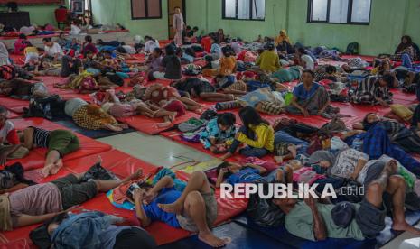Sejumlah warga terdampak banjir mengungsi di tempat pengungsian di Aula Kantor Kecamatan Pekalongan Barat, Kota Pekalongan, Jawa Tengah, Sabtu (17/1/2026). Berdasarkan data Badan Penanggulangan Bencana Daerah (BPBD) Kota Pekalongan per pukul 14.00, sebanyak 972 warga mengungsi di sejumlah tempat pengungsian seperti aula kecamatan, masjid, dan sekolah. (FOTO : ANTARA FOTO/Harviyan Perdana Putra)