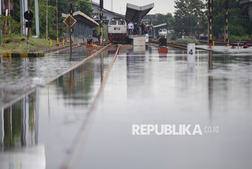 Sejumlah penumpang terpaksa menunggu di Stasiun Pekalongan imbas dari sejumlah rel kereta terendam banjir di sekitar Stasiun Pekalongan, Kota Pekalongan, Jawa Tengah, Sabtu (17/1/2026). Berdasarkan data PT KAI Daop IV Semarang, hujan lebat yang terjadi sejak Jumat (16/1) sore menyebabkan sejumlah ruas rel kereta api jalur Stasiun Pekalongan-Sragi terendam banjir dengan ketinggian sekitar 9-20 centimeter di atas bantalan rel, yang berimbas sejumlah perjalanan terganggu atau tidak dapat melintas dari arah Semarang-Jakarta maupun sebaliknya. (FOTO : ANTARA FOTO/Harviyan Perdana Putra)