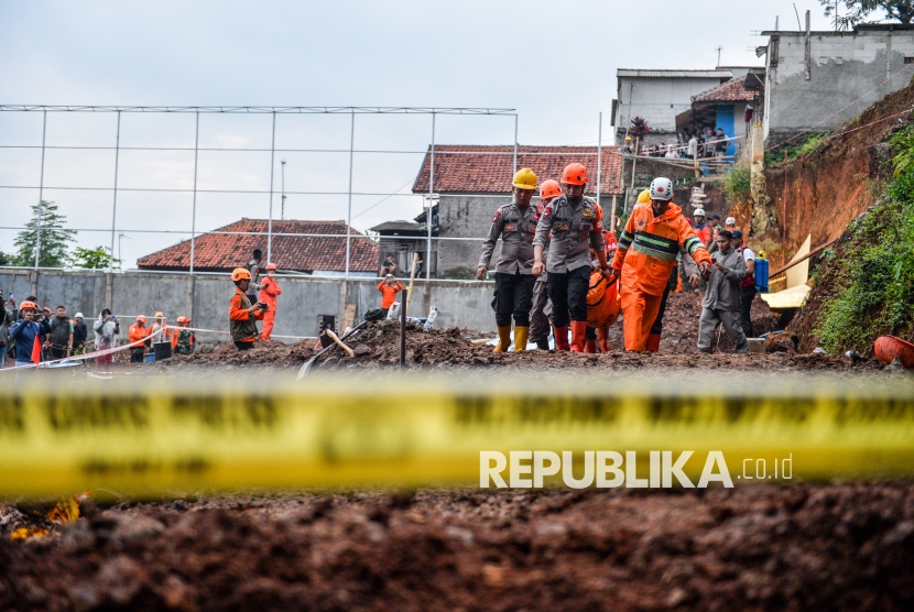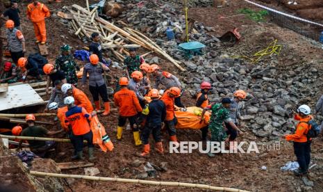 REPUBLIKA.CO.ID, SUMEDANG -- Petugas SAR membawa jenazah menuju mobil ambulans dari tempat kejadian longsor di Kampung Wates, Desa Cisempur, Kecamatan Jatinangor, Kabupaten Sumedang, Jawa Barat, Jumat (2/1/2026).