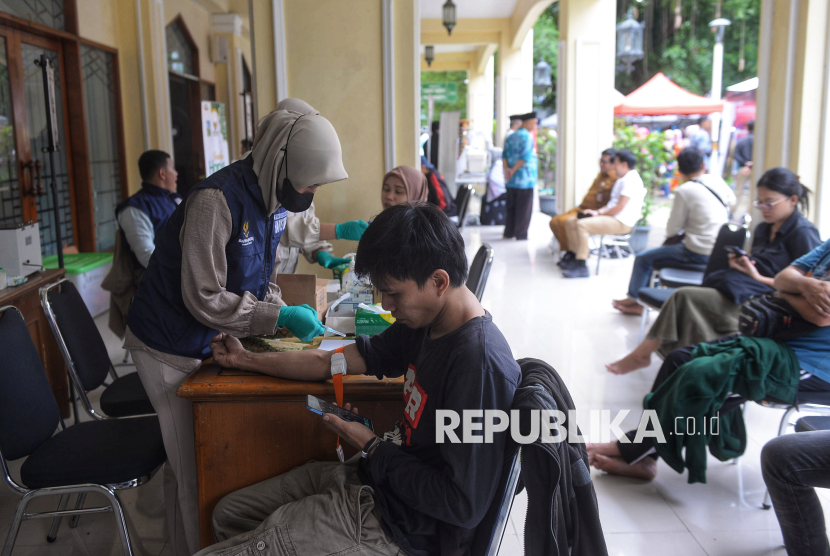 Petugas menghapus tato peserta menggunakan laser di Masjid Sunda Kelapa, Jakarta, Selasa (24/2/2026). Baznas Bazis DKI Jakarta mengelar roadshow layanan hapus tato gratis bagi masyarakat yang ingin berhijrah di berbagai wilayah Jakarta. Program ini menargetkan sekitar 1.000 peserta. Pendaftaran dibuka mulai 23 Februari hingga 4 Maret 2026 melalui laman daring. Kegiatan hapus tato bertujuan memberikan kesempatan kepada masyarakat yang ingin berhijrah dan memperbaiki diri. (FOTO : Republika/Prayogi)
