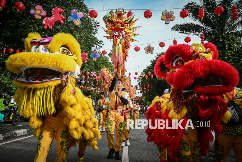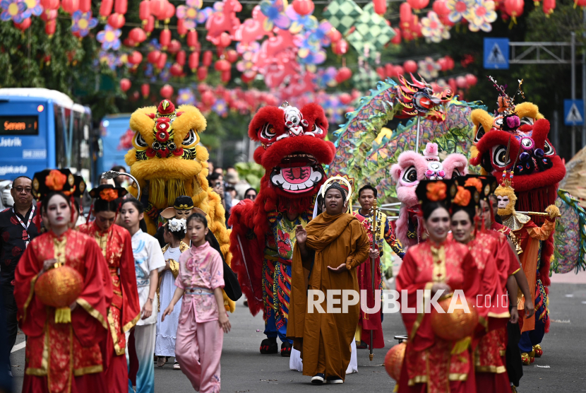 REPUBLIKA.CO.ID, JAKARTA -- Peserta mengikuti Parade Imlek Nusantara di kawasan Lapangan Banteng, Jakarta, Sabtu (28/2/2026).